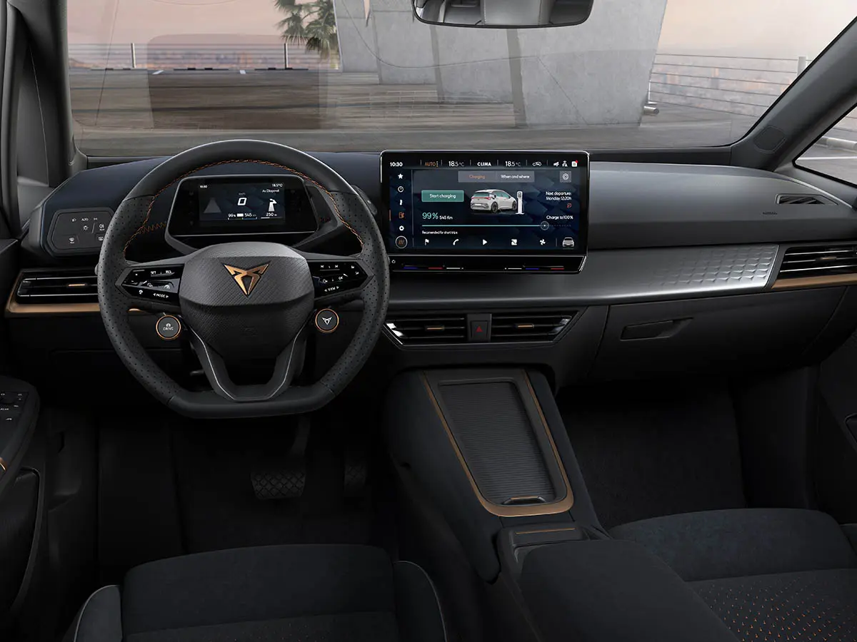 De binnenmaten van de Curpa Born zijn identiek aan de Volkswagen ID3. Het dashboard heeft overeenkomsten met de ID3, maar heeft ook verschillen. De Cupra heeft een 12-inch touchscreen in plaats van een 10-inch scherm. Daarnaast is de auto verkrijgbaar met een Beats-audio systeem, die je in de ID3 niet zult bespeuren.