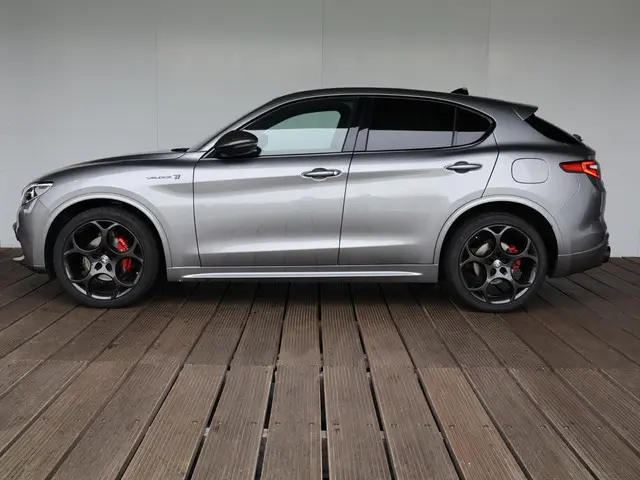 De naam zegt eigenlijk alles al: Veloce betekent “snel”, en TI staat voor Turismo Internazionale, een historisch label dat Alfa Romeo al decennialang gebruikt voor de meest exclusieve, sportieve en luxueuze uitvoeringen. De Stelvio Veloce TI is dan ook de belichaming van die filosofie: een unieke SUV met de uitstraling van een sportwagen en het raffinement van een grand tourer.Het exterieur is voorzien van subtiele carbonaccenten, 21-inch velgen en donkere details die verwijzen naar de krachtige Quadrifoglio-lijn. Binnenin is het een oase van Italiaans vakmanschap en een sterke inspiratie van de Stelvio Quadrifoglio: sportstoelen in leder en Alcantara, een donkere hemelbekleding, elektrisch verstelbare stoelen, verlichte instaplijsten en hoogwaardige afwerking zorgen voor een ambiance die zowel elegant als prestatiegericht is.