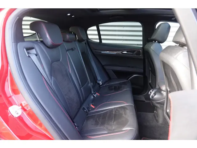 Bij het ontwerpen van de Alfa Romeo Stelvio stonden uw comfort en uw veiligheid centraal. Deze Stelvio is van het bouwjaar 2018, hij heeft 94088 kilometer gelopen. De aandrijving van deze Alfa Romeo wordt verzorgd door een zescilinder benzinemotor en een automatische transmissie. Het kan niet op: een fraai lederen interieur, zeeën van licht met het elektrisch bediende glazen panorama dak en probleemloos in- en uitladen met de elektrisch bedienbare achterklep. De meegeleverde stoelverwarming zorgt in no time voor een behaaglijk gevoel als het buiten koud is. Dankzij de xenonverlichting profiteert u in het donker van een krachtige en heldere lichtbundel. Bij de zeer complete uitrusting van deze auto behoren ook donker getint glas achter en LED-achterlichten.Kommaar-kommaar-kommaar, aldus de achteruitrijcamera. Iedere centimeter vrije ruimte komt haarscherp in beeld. Schadevrij inparkeren maar! Met adaptive cruise control houdt de auto zelfstandig afstand tot uw voorligger. Een veiligheidsverhogende optie waarmee u comfortabel onderweg bent. Bij een auto van topkwaliteit hoort geluid van topkwaliteit. Daarom is deze auto voorzien van een Harman/Kardon audiosysteem. Het navigatiesysteem met harde schijf brengt u soepel en vlot naar uw bestemming. In een auto als deze kunt u niet zonder electronic climate control, zodat de temperatuur altijd goed is. En deze auto heeft ook Harman Kardon-audiosysteem, schakelpaddles aan het stuur, DAB ontvangst, regensensor en automatisch dimmende binnenspiegel als standaard uitrusting.