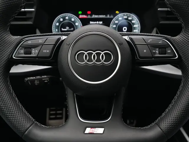 - Driespaaks lederen sportcontourstuur, afgevlakt aan de onderzijde, multifunctioneel plus, met stuurpaddels (2PK)