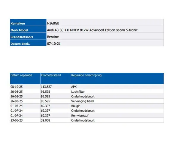 Voertuiggegevens van deze Audi A3