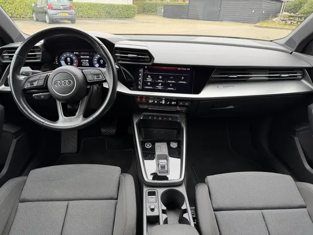 Deze Audi A3 Sportback staat garant voor vele veilige en comfortabele kilometers. De aandrijving van deze Audi wordt verzorgd door een driecilinder benzinemotor en een automatische transmissie. Stevig ondersteund door de sportstoelen blijft u bij elke beweging op uw plek. De uitmonstering van deze auto wordt gecompleteerd door onder meer 17 inch lichtmetalen velgen, Full LED koplampen, dakspoiler, in delen neerklapbare achterbank en verwarmde ruitensproeiers.Het digitale dashboard is niet alleen enorm fraai en handig, maar draagt actief bij aan een veilige en slimme rit. Pech oplossen en zelfs voorkomen? Gaat eenvoudig. Via Connected Services heeft u alle data in de hand, gewoon op de smartphone! Een belangrijke veiligheidsvoorziening is de bediening van het audio-installatiesysteem en het full map navigatiesysteem via knoppen op het stuur. Dab-ontvangst geeft daarbij een kraakheldere ontvangst. Uw smartphone komt onderweg weer helemaal op verhaal door de draadloze telefoonlader. Met de electronic climate control selecteert u de gewenste temperatuur. Het systeem doet de rest. Ook WIFI-hotspot, parkeersensoren achter, regensensor, cruise control, sportstuurwiel en automatisch dimmende buitenspiegels horen tot de voorzieningen op deze auto.