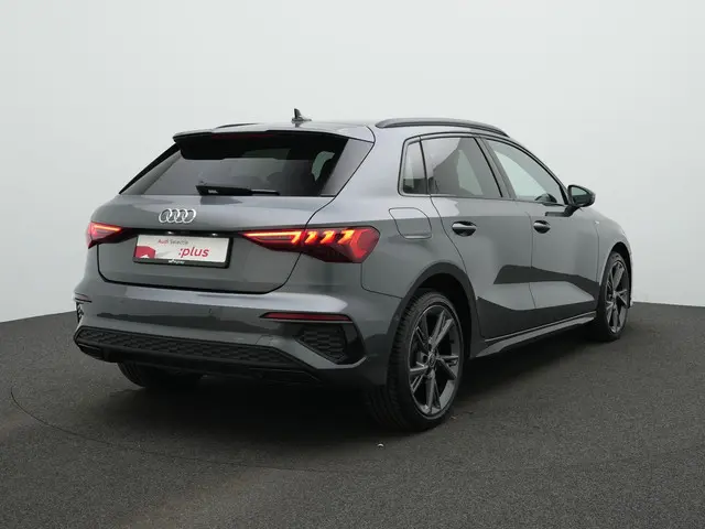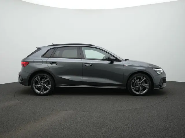 In Daytonagrijs pareleffect komt het design prachtig tot zijn recht. De lak geeft diepte en contrast, en benadrukt de strakke lijnen van de Sportback. Als Advanced edition met S-Line exterieur oogt deze A3 extra scherp: de S-Line bumpers, zwarte accenten en sportieve details zorgen voor een dynamische en verzorgde uitstraling. Het geheel voelt sportief, maar blijft duidelijk binnen de elegante Audi-lijn.