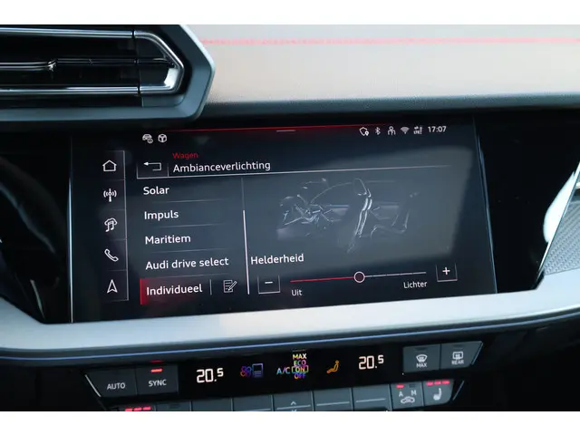 Hatchbacks zoals deze Audi A3 Sportback bieden het allemaal: een ruim interieur, fijne rijeigenschappen en comfortabel weggedrag. De S-Line styling verfraait het uiterlijk met verschillende sportieve accenten. Onder de motorkap ligt een zuinige viercilinder motor. Kent u het gevoel van een elektrisch bediend glazen panorama dak? Wij zeggen: licht, lucht en ruimte. En dan hebben we het nog niet eens over de luxe sensatie van het lederen interieur. In de verwarmbare voorstoelen zitten is elke keer een welkom gevoel. Goeie looks? Jazeker! Maar de sportstoelen zorgen ook voor een goed gesteunde en comfortabele zit. Dankzij de matrix LED-verlichting geven de koplampen ook in het donker daglicht. De uitmonstering van deze auto wordt gecompleteerd door onder meer 18 inch lichtmetalen velgen, zwarte hemelbekleding, dakspoiler, donker getint glas achter, in delen neerklapbare achterbank en LED-achterlichten.Verken de digitale wereld van mobiliteit waar het digitale dashboard alles biedt wat u nodig heeft om uw reis comfortabel te maken. Met de achteruitrijcamera ziet u wat er achter de auto gebeurt. Zo rijdt u moeiteloos achteruit. Met adaptive cruise control houdt de auto zelfstandig afstand tot uw voorligger. Een veiligheidsverhogende optie waarmee u comfortabel onderweg bent. Met de ingebouwde spraakbediening kunt u de belangrijkste voertuigsystemen bedienen met stemcommando's. De jeugd is niet los te maken van hun smartphone, en dat zie je ook aan deze jonge auto. Via een speciale app staat u overal en altijd in contact met uw vierwieler. Superhandig! Met premium audiosysteem, full map navigatiesysteem, WIFI-hotspot, automatische airconditioning, sportstuur met schakelpaddels en draadloos opladen is deze auto helemaal compleet.
