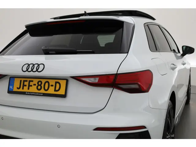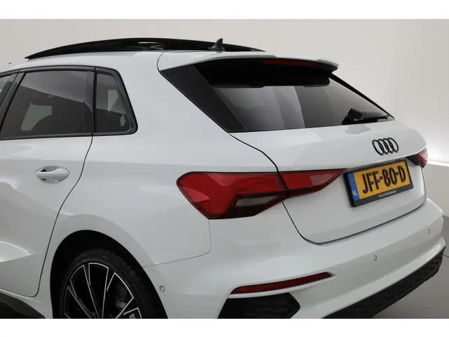Audi A3 Sportback 45 TFSI e S Line voorzien van o.a. panoramadak, navigatiesysteem, stoelverwarming, parkeer assistent, elektrische achterklep, Apple CarPlay en Android Auto, keyless entry en go etc.Deze auto wordt standaard geleverd met 12 maanden BOVAG garantie, een onderhoudsbeurt volgens fabrieksschema, professionele reiniging binnen- en buitenzijde, 10 liter brandstof, NAP (Nationale Auto Pas) en uitgebreide uitleg van je nieuwe auto.