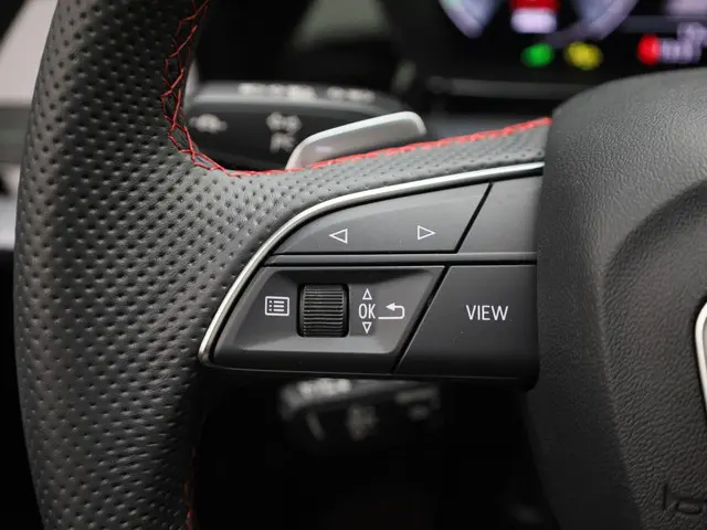 - Driespaaks lederen sportcontourstuur, afgevlakt aan de onderzijde, multifunctioneel plus, met stuurpaddels (2PK)