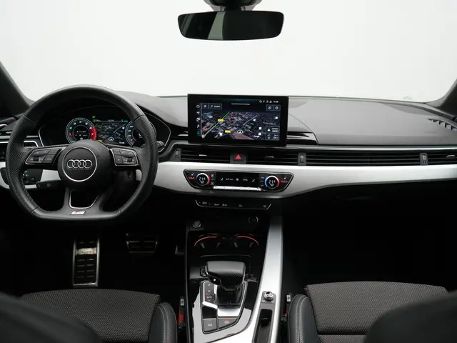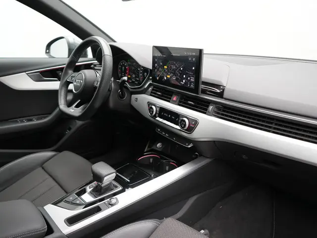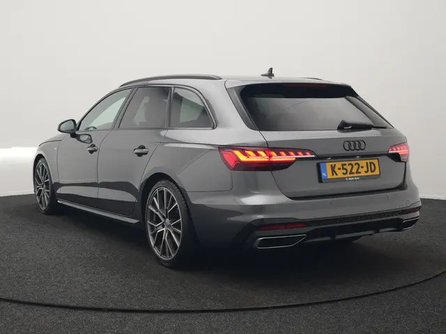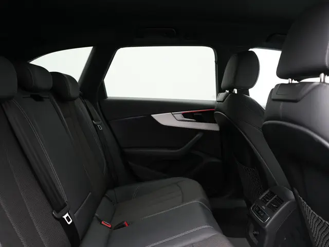 Audi A4 Avant 35 TFSI S Line 150pk Dealer O.H. | 2x S Line | Trekhaak Afn. | Sfeerverlichting | Lederen Sportstoelen Verwarmd | Virtual Cockpit | Matrix LED | Keyless | Apple Carplay | Navigatie | DAB | 19"L.M |Kilometer na kilometer, bocht na bocht levert deze Audi A4 Avant de beste rijprestaties. Met de S-Line styling laat dit model zich van zijn meest dynamische kant zien. Met zijn benzinemotor en automatische transmissie is dit een prima auto voor nog vele kilometers. De verwarmbare voorstoelen zijn een weldaad voor rug en schouders. Opvallend zijn de stoere sportstoelen, die zorgen voor een onwrikbare zit in de scherpe bochten. De elektrisch bedienbare achterklep opent met een druk op de knop. De koplampen met matrix LED-verlichting zijn het hoogst haalbare op het gebied van autoverlichting. Tot de uitrusting van deze Audi behoren ook 19 inch lichtmetalen velgen, sportonderstel, halflederen bekleding, warmtewerend glas, dakspoiler en in delen neerklapbare achterbank.