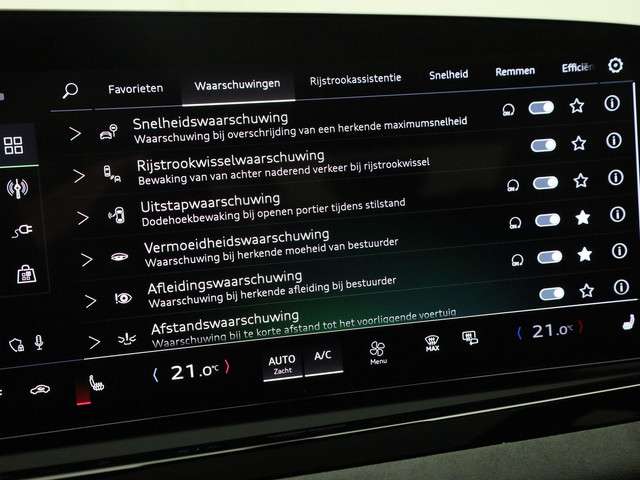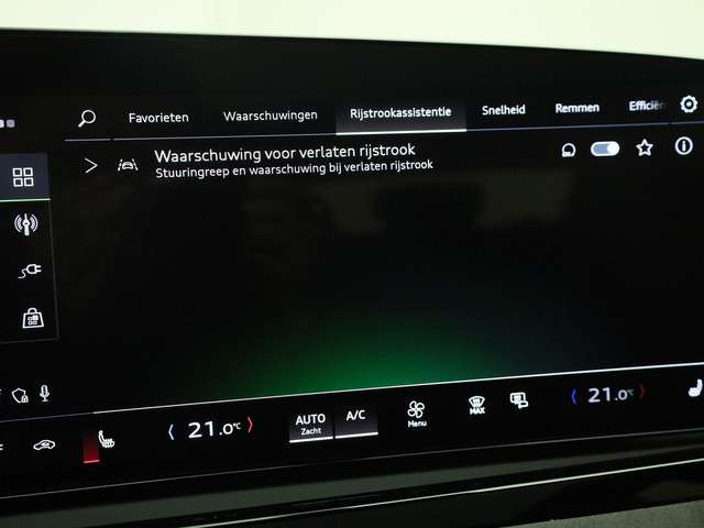 Deze Audi biedt u niet alleen comfort en rijplezier, maar ook veiligheid. Actieve veiligheidssystemen houden voor u de weg in de gaten en reageren op onvoorziene situaties voordat u dat kunt. Onderweg zorgt verkeersborddetectie ervoor dat u geen waarschuwingsbord mist. Met het Lane-keeping systeem gaat u nooit onbedoeld over de streep. Kop-staartbotsingen vormen een belangrijk deel van de meest voorkomende aanrijdingen. De forward collision warning van deze auto voorkomt zulke botsingen geheel of reduceert de ernst van de schade aanzienlijk. In deze Audi vinden we verder een dodehoekdetectie, front assist, vermoeidheidsherkenning en frontale botsbescherming.