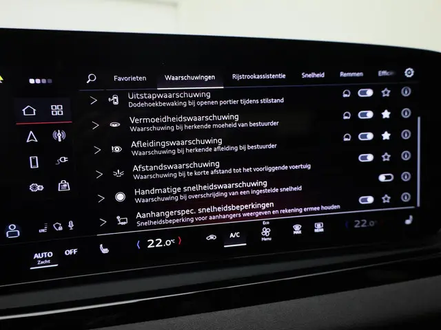 De intelligente veiligheidssystemen in deze auto waken continu over uw veiligheid. Bij de veiligheidssystemen van deze auto hoort ook de verkeersbord-detectie. Die leest tijdens het rijden als het ware met u mee en attendeert u op de significante verkeersborden langs en boven de weg. Een camera houdt de juiste koers binnen de rijstrook in de gaten en het Lane-keeping systeem corrigeert bij afwijkingen. Veel aanrijdingen bestaan uit kop-staartbotsingen. De forward collision warning reduceert dat risico aanzienlijk. Bovenop deze veiligheidsfeatures heeft deze Audi bovendien dodehoekdetectie, vermoeidheidsherkenning en frontale botsbescherming.