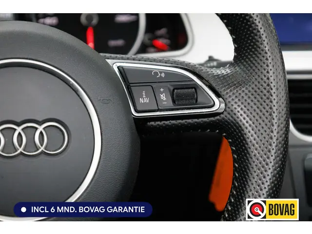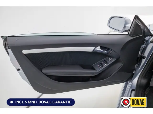 Zodra de zon zich laat zien, kunt u heerlijk genieten achter het stuur van deze cabriolet. Deze Audi A5 Cabriolet bewijst haar klasse met een elegant uiterlijk en een comfortabele binnenruimte, onmiskenbaar een kwaliteitsauto uit Duitsland. De S-Line styling geeft dit model een elegante en opvallende uitstraling. Een krachtige motor geeft deze auto zijn sportieve prestaties. Ga samen met uw bijrijder lekker zitten in de verwarmbare voorstoelen. Stevig ondersteund door de sportstoelen blijft u bij elke beweging op uw plek. Het elektrische cabriodak opent en sluit zonder dat u daar extra moeite voor hoeft te doen. Xenonverlichting zorgt voor een krachtige en heldere lichtbundel. Ook 18 inch lichtmetalen velgen, sportonderstel, verstelbare lendensteunen en variabele stuurbekrachtiging zijn aan boord.Met adaptive cruise control houdt de auto zelfstandig afstand tot uw voorligger. Een veiligheidsverhogende optie waarmee u comfortabel onderweg bent. Als u regelmatig met een aanhanger of een fietsendrager op pad bent, is de afneembare trekhaak een praktische extra. Altijd een deskundige gids aan boord, dankzij het navigatiesysteem met harde schijf. Het spreekt voor zich dat een auto als deze ook van automatische airconditioning is voorzien. Altijd twee handen aan het stuur, wel zo veilig en gemakkelijk. Ook daaraan is gedacht, met de audiobediening op het stuur. Met DAB ontvangst, parkeersensoren voor en achter, regensensor, keyless entry, automatisch dimmende binnenspiegel en centrale deurvergrendeling met afstandsbediening is deze Audi helemaal compleet.