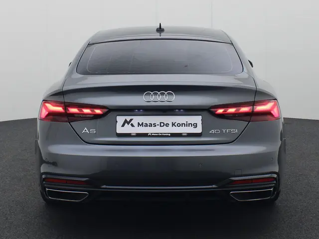 Bij Maas-De Koning doen we er alles aan om uw rijervaring zo aangenaam en zorgeloos mogelijk te maken. Bij de aanschaf van een dealeroccasion heeft u de vrijheid om te kiezen welk afleverpakket het beste aansluit bij uw wensen. Wij bieden twee pakketten: het Standaard pakket (inbegrepen) en het Approved pakket (tegen een meerprijs). Met het Approved pakket kiest u voor extra zekerheid, zoals minimaal 12 maanden garantie en een onderhoudsvrije periode van 6 maanden of 7.500 km na aflevering. Zo geniet u van maximale gemoedsrust. U bepaalt zelf welke zekerheid en service u nodig heeft, terwijl wij ervoor zorgen dat uw voertuig technisch volledig wordt klaargemaakt volgens uw voorkeuren.Een auto is meer dan een vervoermiddel. De juiste auto kan uw leven verrijken, door zijn comfort, zijn smaakvolle vormgeving en door de rijervaring die hij biedt. Dat geldt bijvoorbeeld voor deze Audi A5 Sportback, die uitblinkt door zijn design maar vooral ook om zijn rijkwaliteiten. Een hoogtepunt uit de specificatielijst van deze auto is de sportieve S-Line styling. In deze auto vindt u een benzinemotor en een automatische transmissie. De leren bekleding straalt klasse en goede smaak uit. Deze Audi A5 Sportback heeft verwarmbare voorstoelen, voor zowel bestuurder als bijrijder. In deze sportstoelen voel je je één met je auto. Een praktische extra is de elektrisch bedienbare achterklep die opent en sluit met een druk op de knop. De verlichting van de koplampen geeft het gevoel dat het altijd dag is. De slimme matrix LED-technologie past zich aan bij tegenliggers, zonder verlies van lichtkwaliteit. Ook 19 inch lichtmetalen velgen, sportonderstel, adaptief dempingsysteem, warmtewerend glas, in delen neerklapbare achterbank en LED-achterlichten zijn aan boord.