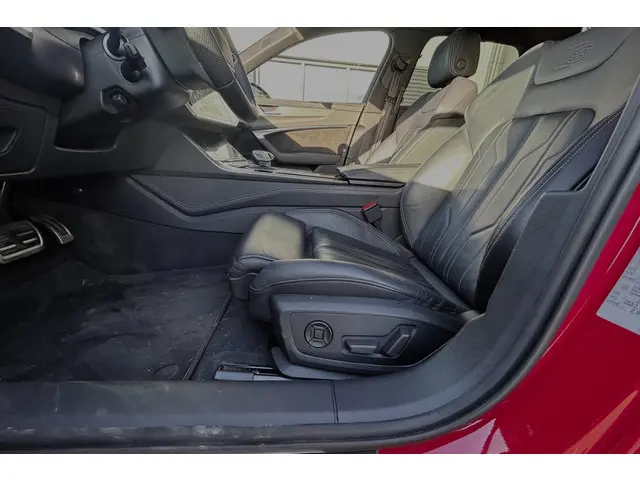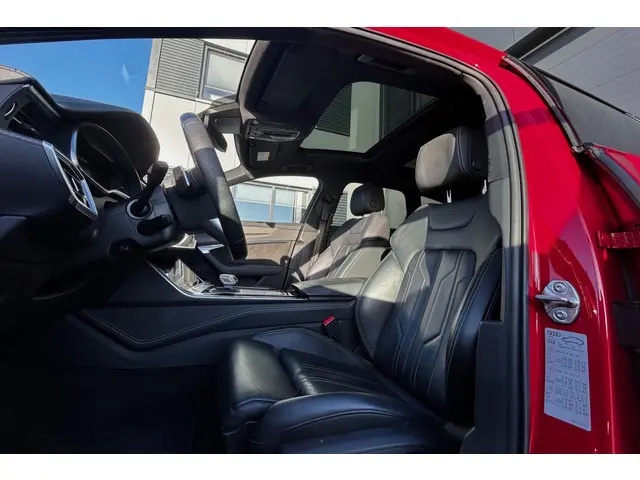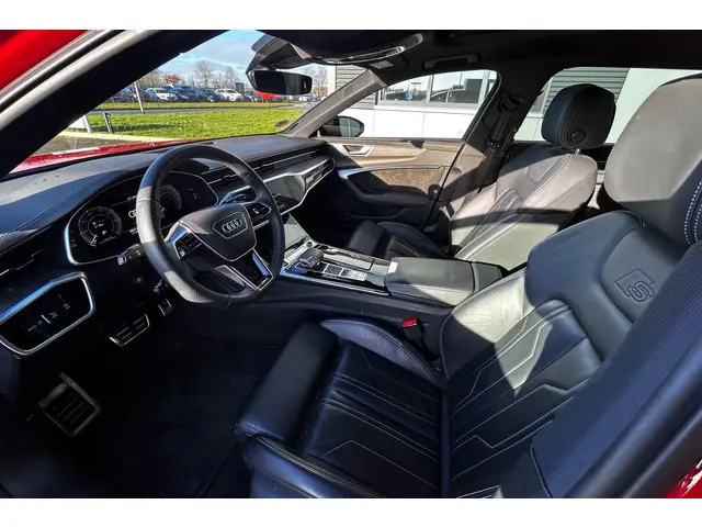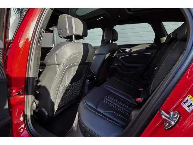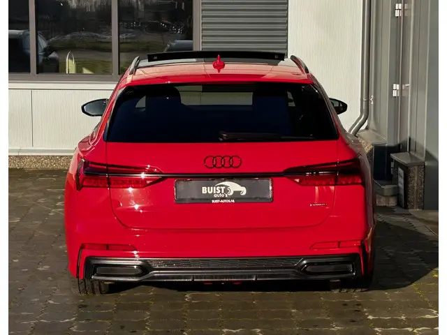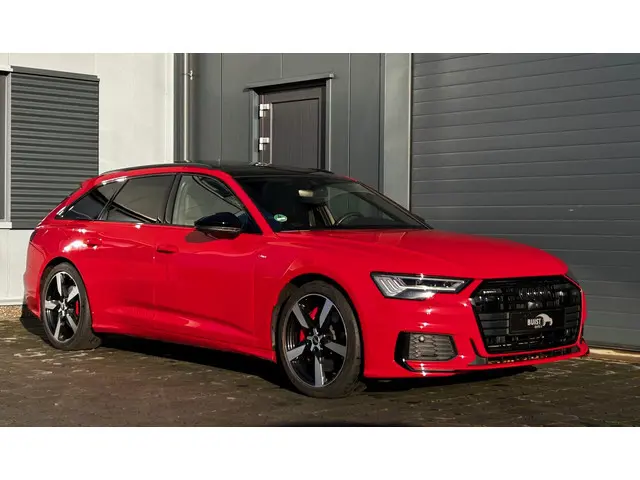 Waanzinnig samengestelde Audi A6 Avant quattro S Line Competition met de 367pk sterke 2.0 TFSi motor met hybride techniek en slechts 86790km! Deze A6 is uitgevoerd in Tangorot en is o.a. voorzien van een zwart optiek pakket, 20" Audi Sport lichtmetalen velgen en het S-Line exterieur, verder is deze A6 voorzien van bijna alle mogelijke opties zoals het S Line interieur met sportstoelen en lederen bekleding, lederen dashboard, carbon interieurafwerking, verwarmd S-Line sportstuur, elektrisch verstelbare stoelen met geheugen, stoelverwarming voor en achter, matrix LED koplampen en LED achterlichten met o.a. dynamische knipperlichten, adaptief onderstel, alarm klasse 3, Virtual cockpit, B&O HiFi (Bang and Olufsen), navigatie met multimedia, DAB en bluetooth, draadloze telefoonlader, TV ontvanger, uitgebreid sfeerverlichtingspakket, keyless entry, softclose, elektrische achterklep, privacy glass, 4-zone climate control, adaptieve cruise control, PDC voor en achter met 360 graden camera en parkassist, night vision, licht- en regensensor, trekhaak met draaibare kogel (2000kg trekgewicht), dodehoekdetectie, lane assist, enz. Zeer goed onderhouden auto met 2 sleutels en complete historie! De prijs voor deze sportieve A6 inclusief onderhoudsbeurt volgens schema, nieuwe APK en 12 maanden BOVAG garantie t.w.v. € 1.295,- is € 42.045,-.Meer informatie