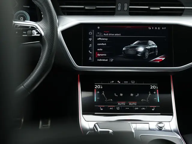 Audi A6 Avant 55 TFSI e quattro – Luxe, dynamiek en hybride efficiëntieDeze Audi A6 Avant Plug-in Hybrid is uitgevoerd met S-Line interieur/exterieur, panoramadak en het Optiekpakket zwart plus, wat zorgt voor een krachtige en tegelijk stijlvolle uitstraling. De combinatie van 20 inch Audi Sport velgen, HD-Matrix LED koplampen en privacy glas geeft deze A6 een uitgesproken, sportief karakter. Het is een auto die elegantie en dynamiek moeiteloos samenbrengt, met de efficiëntie van plug-in hybride technologie.