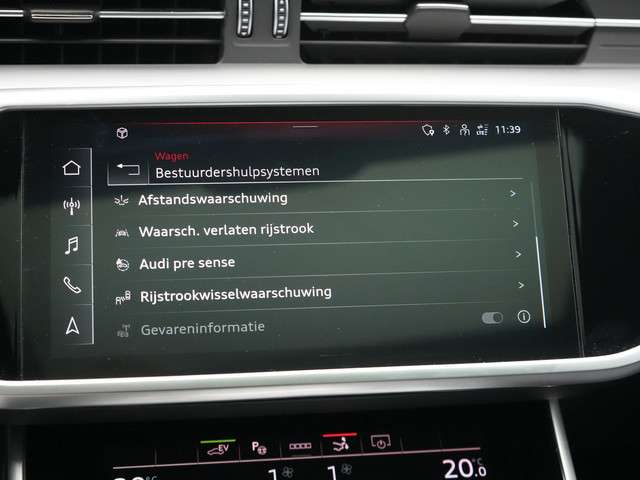 Aan boord van deze Audi houden verschillende geavanceerde systemen voor u de weg in de gaten. Ze waarschuwen u voor noodsituaties en kunnen in een aantal gevallen ook zelf ingrijpen. Bij de veiligheidssystemen van deze Audi hoort ook de verkeersbord-detectie. Die leest tijdens het rijden als het ware met u mee en attendeert u op de significante verkeersborden langs en boven de weg. Deze Audi A7 Sportback is ook behulpzaam als het gaat om een rechte koers. Het Lane-keeping systeem signaleert en corrigeert als u onbedoeld de rijstrooklijnen dreigt te overschrijden. Het forward collision warning-systeem berekent via een sensor de afstand tot het verkeer vóór u en komt in actie als er gevaar bestaat van een botsing. Verder is deze auto uitgerust met dodehoekdetectie en autonoom remsysteem.
