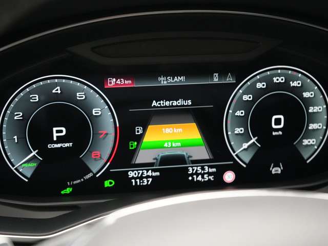 U leest alle belangrijke functies helder af dankzij het digitale dashboard. Het gebruik van de 360 graden camera op deze auto zorgt voor een groter gezichtsveld en helpt de dode hoeken te elimineren. Met adaptive cruise control houdt de auto zelfstandig afstand tot uw voorligger. Een veiligheidsverhogende optie waarmee u comfortabel onderweg bent. Filerijden? Doodvermoeiend. Daarom helpt de file assistent zo nodig een handje. Door automatisch afstand te houden, en te stoppen als uw voorligger stilstaat. Via uw smartphone en Connected Services checkt u eenvoudig de belangrijke functies van de auto, overal en altijd. Met full map navigatiesysteem, kruisend verkeer detectie, electronic climate control, schakelpaddles aan het stuur, draadloos opladen en DAB ontvangst is deze Audi helemaal compleet.