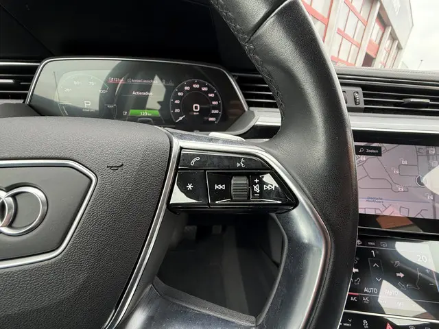 Zoals u mag verwachten van deze Audi e-tron is hij uitgerust met een reeks aan actieve veiligheidssystemen. Met het Lane-keeping systeem gaat u nooit onbedoeld over de streep. Het risico van een kop-staartbotsing wordt aanzienlijk verminderd door de forward collision warning. In deze Audi vinden we verder een brake assist en bandenspanningcontrolesysteem.
