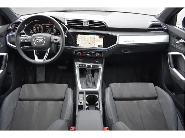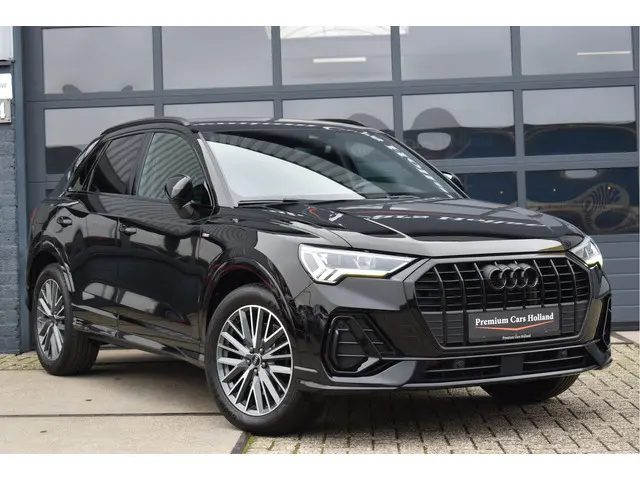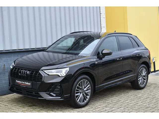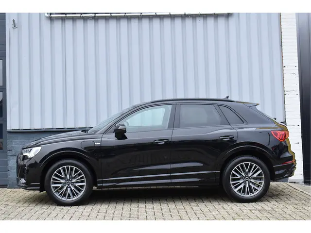 2022 Audi Q3 45 Tfsi e S-Line 245 Pk Black Ed 08-2022 met 78 Dkm Mythos Zwart Metallic DLR Onderhouden Opties: Black Optik Pakket Navigatie MMI Plus Leder/Alcantara Sportstoelen S-Line Ext Pakket Matrix Koplampen Keyless Entry/Start Parkeersensoren V+A Drive Select Instelbaar Climate Control 2 Zone Stoelverwarming Bluetooth Telefoon DAB Radio Spiegels Elektrisch Inklapbaar Digitale Cockpit Zwarte Hemel Achteruitrijcamera ACC Adaptieve Cruise Control Elektrische Achterklep Getint Glas Achter 19 Inch Audi VelgenAuto verkeert in nieuwstaat, Volledig dealer onderhouden, Afkomstig van 1e eigenaar, Geen schade verleden, Ingekocht bij Audi AG, Originele km-stand, Alle keuringen toegestaan, Direct leverbaar JLG-14-X
