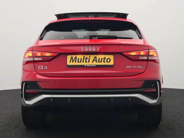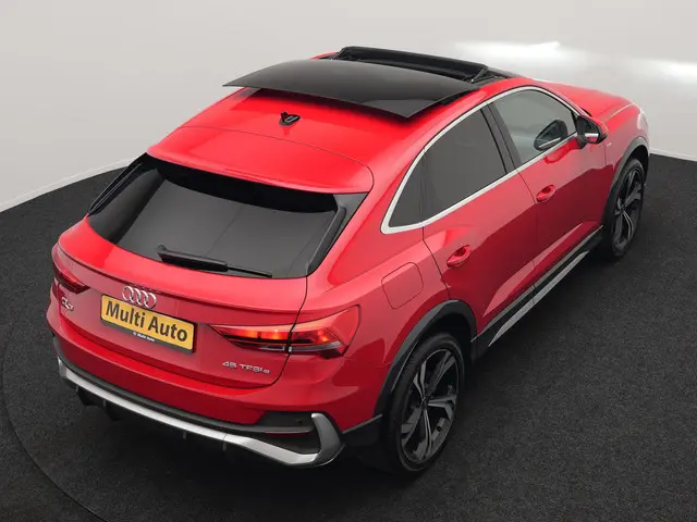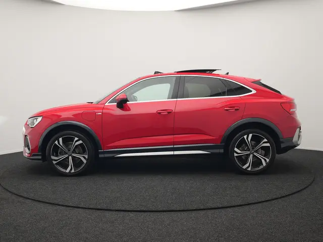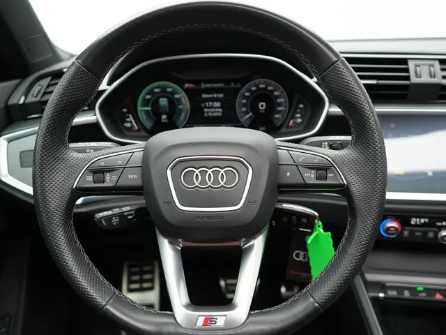Audi Q3 Sportback 45 TFSI e S Line Plug In Hybrid 245pk Dealer O.H PHEV | Schuifdak | Adaptive Cruise | Lederen Sportstoelen Memory & Verwarmd | Sfeerverlichting | Camera | Virtual | Blis | Navigatie | DAB |Tja, wat kunnen we zeggen? Dit is een echte Duitse auto, in alle opzichten. Niet rijden, maar fahren. Kunnen ze wel hoor, bij onze oosterburen. De S-Line styling van deze auto is zowel smaakmakend als spraakmakend. De aanwezige hybride motor is een slimme extra. Tijdens het rijden en remmen laadt de accu bij, zodat de elektromotor de brandstofmotor kan ondersteunen of het zelfs helemaal overnemen. Dat scheelt in kosten! Natuurlijk zijn de sportstoelen super functioneel als het rechterpedaal ingetrapt wordt. Maar ook voor het uiterlijk doen ze veel! De elektrisch bedienbare achterklep opent met een druk op de knop. Tot de uitrusting van deze Audi behoren ook 18 inch lichtmetalen velgen, Full LED koplampen, halflederen bekleding, warmtewerend glas, in delen neerklapbare achterbank en LED-achterlichten.