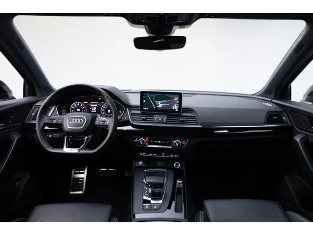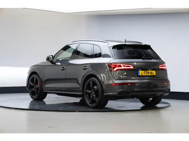 Robuust, luxe en hoogstaande technologie samengebracht in deze Audi Q5, een weerspiegeling van de excellente kwaliteit van Duitse automerken. Een hoogtepunt uit de specificatielijst van deze auto is de sportieve S-Line styling. De aandrijving van deze Audi wordt verzorgd door een viercilinder benzinemotor en een automatische transmissie. De verwarmbare voorstoelen zijn een heerlijke extra optie, waarmee je jezelf en je bijrijder een groot plezier doet. Scherpe bochten, pittige acceleraties? In de sportstoelen blijf je altijd in positie. Het interieur lijkt groter en ruimtelijker dankzij het elektrisch bedienbare glazen panoramadak. De elektrische achterklep opent met een druk op de knop, zodat jij gemakkelijk toegang heeft tot de bagageruimte. De kwaliteit van de matrix LED-verlichting geeft het gevoel dat je bij daglicht rijdt. Bij de rijke uitrusting horen ook 21 inch lichtmetalen velgen, warmtewerend glas, in delen neerklapbare achterbank, LED-achterlichten en verwarmde ruitensproeiers.Voor een goed en duidelijk overzicht onderweg is het digitale dashboard uitermate slim ingedeeld. Strak inparkeren wordt een fluitje van een cent door de achteruitrijcamera. Met adaptive cruise control houdt de auto zelfstandig afstand tot jouw voorligger. Een veiligheidsverhogende optie waarmee je comfortabel onderweg bent. Rijden-stilstaan, rijden-stilstaan. Niks is irritanter en vermoeiender dan filerijden. Daar heeft deze Audi Q5 een oplossing voor: de file assistent, die met radarmeting permanent het tempo aanpast op de voorligger. Zelfs als die stopt. Ook de akoestiek in de auto wordt optimaal benut door het high performance audiosysteem. Met navigatiesysteem met harde schijf, WIFI-hotspot, achteropkomend verkeer waarschuwing, automatische airconditioning, sportstuur met schakelpaddels en draadloos opladen is deze Audi helemaal compleet.