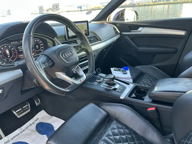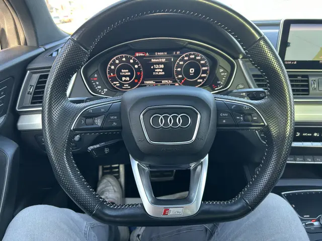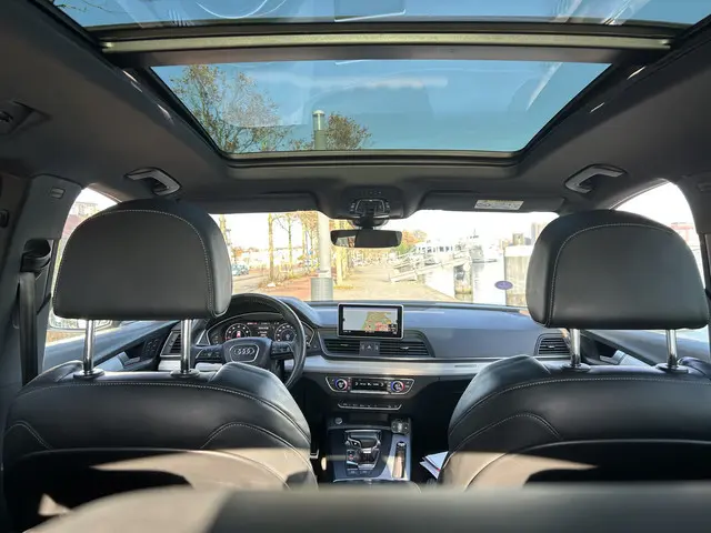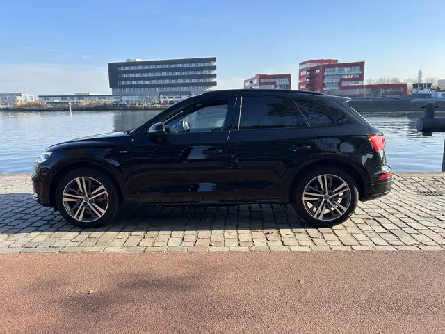De Audi Q5 is gebouwd met hoogwaardige techniek en maakt het rijden van lange ritten, maar ook korte stukjes, tot een feestje. Met de S-Line styling trekt u op een positieve manier de aandacht. De aandrijving komt voor rekening van een benzinemotor en een automatische transmissie. Het stijlvolle lederen interieur geeft deze Audi Q5 net dat beetje extra. Deze Audi Q5 heeft verwarmbare voorstoelen, voor zowel bestuurder als bijrijder. Chauffeur en bijrijder zitten stabiel in de scherpe bochten door de sportstoelen. Het panoramadak zorgt voor maximale lichtinval en kan worden geopend voor extra ventilatie. De elektrisch bedienbare achterklep opent met een druk op de knop. De kwaliteit van de matrix LED-verlichting geeft het gevoel dat u bij daglicht rijdt. In deze auto profiteert u onder andere ook van: 20 inch lichtmetalen velgen, sportonderstel, warmtewerend glas, dakspoiler, in delen neerklapbare achterbank en LED-achterlichten.U leest alle belangrijke functies helder af dankzij het digitale dashboard. Met de 360 graden camera op deze auto wordt het rijden een heel stuk veiliger, dankzij het optimale zicht dat het biedt. Adaptive cruise control is een comfortabele en veilige optie. Het systeem reguleert de snelheid en houdt automatisch afstand tot uw voorligger. De file assistent verzacht het fileleed door automatisch veilig afstand te houden tot de voorligger en zo nodig zelfs te stoppen als de rij tot stilstand komt. De auto is voorzien van een trekhaak en is een uitstekende caravantrekker. En dan is deze auto ook nog eens voorzien van connected drive services, premium audiosysteem, full map navigatiesysteem, WIFI-hotspot, achteropkomend verkeer waarschuwing en automatische airconditioning.