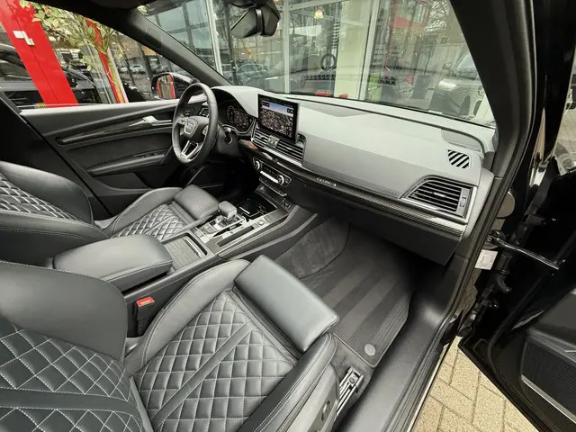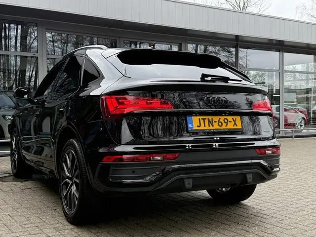 Prestaties op hoog niveau, een onderscheidende, stijlvolle carrosserie en een ruim en comfortabel interieur, het zijn de eigenschappen waarmee auto's als deze Audi Q5 Sportback hun reputatie hebben gevestigd. Een hoogtepunt uit de specificatielijst van deze auto is de sportieve S-Line styling. De aandrijving van deze Audi wordt verzorgd door een viercilinder benzinemotor en een automatische transmissie. Stel u voor: zoevend over de snelweg terwijl het gulle daglicht het lederen interieur binnenvalt door het elektrisch bediende glazen panorama dak. En wat gemak betreft: daar zorgt onder andere de elektrisch bedienbare achterklep voor. Zit u goed? De stoelen zijn eenvoudig instelbaar dankzij de elektrische bediening met geheugen. De kwaliteit van de matrix LED-verlichting geeft het gevoel dat u bij daglicht rijdt. Ook is de auto voorzien van: 20 inch lichtmetalen velgen, halflederen bekleding, warmtewerend glas, in delen neerklapbare achterbank en LED-achterlichten.