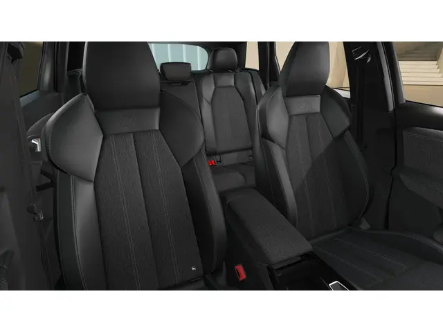 - S-interieur met sportstoelen en zwarte stoffen-kunstlederen bekleding (PWK)