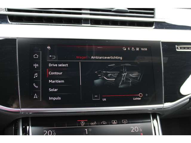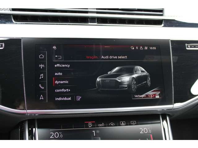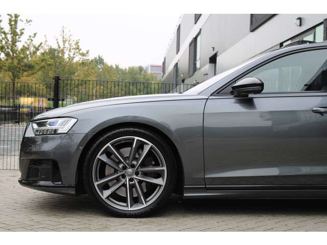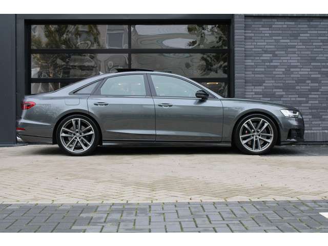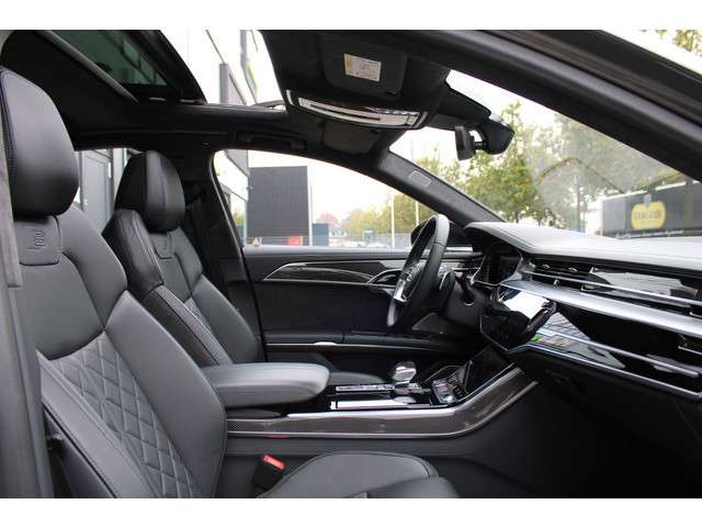 Kwaliteit komt nooit tekort in Duits vakmanschap, dat is te zien aan deze Audi S8 met zijn stijlvolle ontwerp en comfortabele interieur. Sportief, stoer en net even anders dan anders, mede dankzij de S-Line styling. Hij heeft een benzinemotor en een automatische transmissie. Van binnen lijkt het allemaal uitermate ruim dankzij de vrije inval van daglicht via het elektrisch bediende glazen panorama dak. Comfort en luxe? Dat krijgt u door het lederen interieur. En optimaal gemak is er in de vorm van de elektrisch bedienbare achterklep. De massagefunctie van de verwarmbare voorstoelen is een heerlijke extra optie, waarmee u uw rug en die van de bijrijder een groot plezier doet. Dankzij de elektrische stoelbediening is het gemakkelijk om de optimale zitpositie te vinden. Luxepaardjes en levensgenieters worden enthousiast van de verwarmde achterbank. De koplampen zijn voorzien van de allernieuwste lichttechnologie: matrix LED-verlichting. De uitmonstering van deze auto wordt gecompleteerd door onder meer elektrische zonnerollo voor de achterruit, adaptief dempingsysteem, warmtewerend glas, LED-achterlichten en verstelbare lendensteunen.Alle ritinformatie en communicatie is gebundeld in één overzichtelijk digitale dashboard. Het gebruik van de 360 graden camera op deze auto zorgt voor een groter gezichtsveld en helpt de dode hoeken te elimineren. Adaptive cruise control is een comfortabele en veilige optie. Het systeem reguleert de snelheid en houdt automatisch afstand tot uw voorligger. De aanwezige file assistent meet de afstand tot uw voorligger en zorgt voor een veilige afstand. Staat het voor u opeens stil? Dan zorgt het systeem dat de auto ook stopt. Uw smartphone is tegenwoordig de sleutel tot heel veel. Ook voor deze auto. Remote services, noemen we dat. Waar u ook bent, contact houden is een eitje. Met dashboard met spraakbediening, high performance audiosysteem, navigatiesysteem met harde schijf, WIFI-hotspot, kruisend verkeer detectie en electronic climate control is deze auto helemaal compleet.