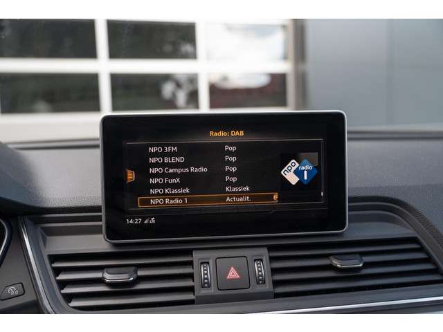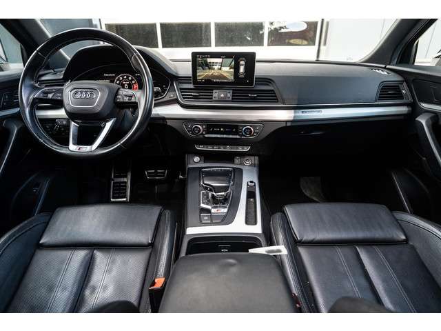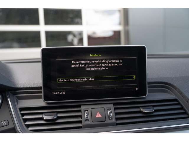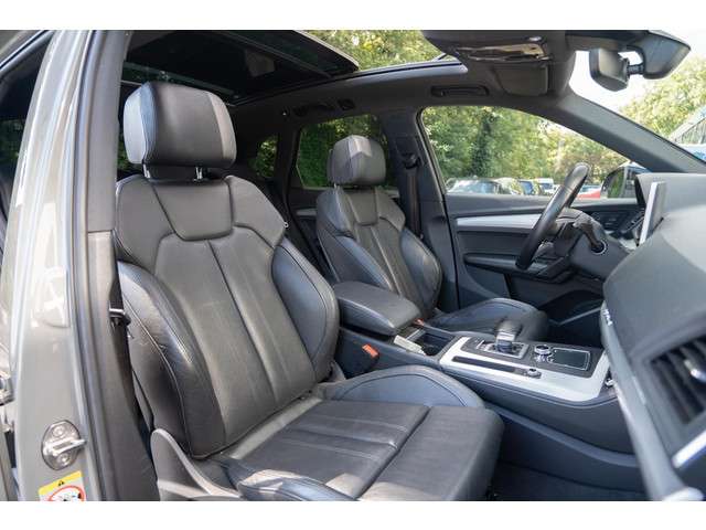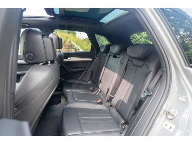 Met zijn compromisloze design, zijn geweldige vermogen en zijn uitgekiende techniek staat deze Audi Q5 garant voor sportieve topprestaties. De liefhebbers hebben het al gezien: de sportieve, stoere S-Line styling! Hij heeft een benzinemotor en een automatische transmissie. In de verwarmbare voorstoelen zitten is elke keer een welkom gevoel. De sportstoelen houden u en uw passagier stevig vast tijdens een snelle rit, maar bieden ook altijd comfortabele ondersteuning. Zon en frisse lucht krijgen vrij spel dankzij het elektrisch bediende glazen panoramadak. De elektrisch bedienbare achterklep opent met een druk op de knop. De koplampen zijn voorzien van matrix LED-verlichting waarmee u aanzienlijk verder kan kijken in het donker. Het systeem past zelf de lichtstraal aan op het moment tegenliggers verblind kunnen worden. Bij de uitrusting van deze Audi horen onder meer 20 inch lichtmetalen velgen, sportonderstel, warmtewerend glas, dakspoiler, in delen neerklapbare achterbank en LED-achterlichten.Het systeem controleert alle belangrijke functies en geeft die perfect weer via het digitale dashboard. Het gebruik van de 360 graden camera op deze auto zorgt voor een groter gezichtsveld en helpt de dode hoeken te elimineren. Adaptive cruise control houdt de ingestelde snelheid vast en houdt automatisch afstand tot uw voorligger. De file assistent verzacht het fileleed door automatisch veilig afstand te houden tot de voorligger en zo nodig zelfs te stoppen als de rij tot stilstand komt. Een subliem geluidsspectrum wordt onder alle omstandigheden geleverd door het high performance audiosysteem. Wat u ook in deze auto kunt vinden zijn navigatiesysteem met harde schijf, achteropkomend verkeer waarschuwing, automatische airconditioning, sportstuur met schakelpaddels, draadloos opladen en DAB ontvangst.