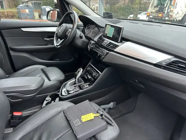 Omdat rijden een plezier mag zijn, staat deze BMW 2-serie Active Tourer enthousiast te glimmen in de showroom. Technisch in topconditie, strak in de lak... echt een droomauto! De krachtige benzinemotor van deze auto is gekoppeld aan een automatische transmissie. De auto is voorzien van leren bekleding - een fraaie en sfeerverhogende extra. De verwarmbare voorstoelen zijn een heerlijke extra optie, waarmee u uzelf en uw bijrijder een groot plezier doet. U blijft ook in de scherpe bochten goed ondersteund door de fraaie sportstoelen. De bagageruimte is toegankelijk via een comfortverhogende elektrische achterklep. Het glazen panoramadak zorgt voor een onovertroffen uitzicht. Xenonverlichting zorgt in het donker voor beter zicht. Tot de uitrusting van deze BMW behoren ook 17 inch lichtmetalen velgen, LED koplampen, getint glas, in delen neerklapbare achterbank en snelheidsafhankelijke stuurbekrachtiging.Ongelukken of parkeerschade? Dat gebeurt u niet meer, met de achteruitrijcamera. Adaptive cruise control houdt de ingestelde snelheid vast en houdt automatisch afstand tot uw voorligger. Filerijden? Doodvermoeiend. Daarom helpt de file assistent zo nodig een handje. Door automatisch afstand te houden, en te stoppen als uw voorligger stilstaat. Als u regelmatig met een aanhanger of een fietsendrager op pad bent, is de afneembare trekhaak een praktische extra. Appen met uw auto? Geen probleem. U kunt van overal contact opnemen, de functies controleren en activeren. U bedient 'm met remote services. En dan is deze auto ook nog eens voorzien van dashboard met spraakbediening, premium audiosysteem, full map navigatiesysteem, achteropkomend verkeer waarschuwing, automatische airconditioning en regensensor.