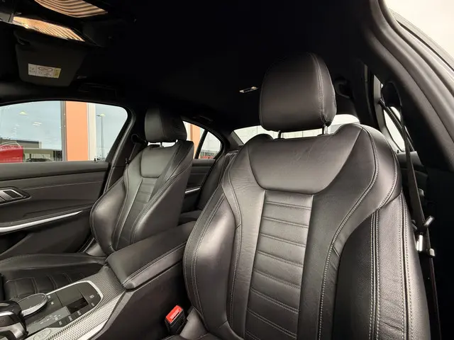 Alle technologie in de BMW 3-serie is er op gericht om uw rit veilig en gemakkelijk te laten verlopen. De aandrijving komt voor rekening van een benzinemotor en een automatische transmissie. De lederen bekleding geeft het interieur een hoogwaardige uitstraling. Bestuurder en bijrijder krijgen een warm welkom: deze BMW 3-serie is voorzien van verwarmbare voorstoelen. Opvallend zijn de stoere sportstoelen, die zorgen voor een onwrikbare zit in de scherpe bochten. In deze auto profiteert u onder andere ook van: LED koplampen, sport line onderstel, in delen neerklapbare achterbank, LED-achterlichten en Servotronic snelheidsafhankelijke stuurbekrachtiging.Het digitale dashboard is qua lay-out en zichtbaarheid superslim ingedeeld. Alle functies in één keer in beeld! Met de achteruitrijcamera ziet u precies wat er achter de auto gebeurt. Navigatie, onderhoudsstatus, vergrendeling, audio... de mogelijkheden van remote services zijn haast oneindig. Ook deze auto laat zich bedienen en analyseren via uw smartphone! In deze 3-serie vindt u niet alleen schakelaars op het stuur om het navigatiesysteem met harde schijf te bedienen en het audio-installatiesysteem met DAB-ontvangst, maar er is ook spraakbediening. Onderweg uw smartphone opladen zonder gedoe met stekkers en kabels? Dat kan, met de draadloze oplaadmogelijkheid voor telefoons. Ook WIFI-hotspot, achteropkomend verkeer waarschuwing, electronic climate control, lederen sportstuur, regensensor en cruise control horen tot de voorzieningen op deze auto.