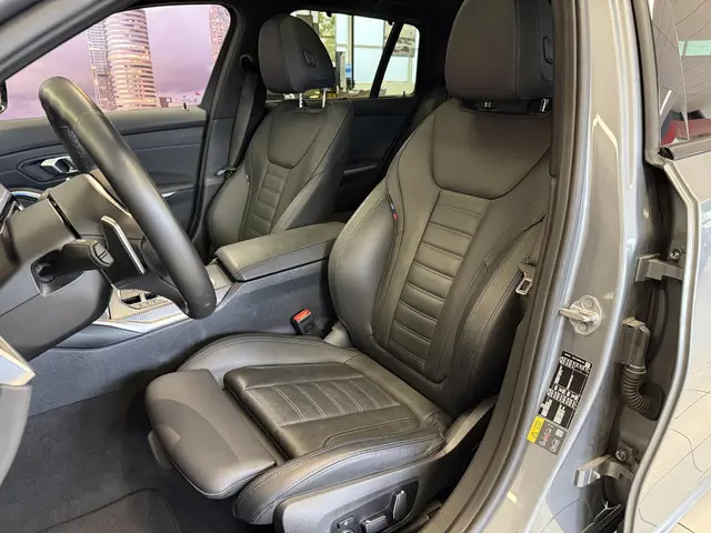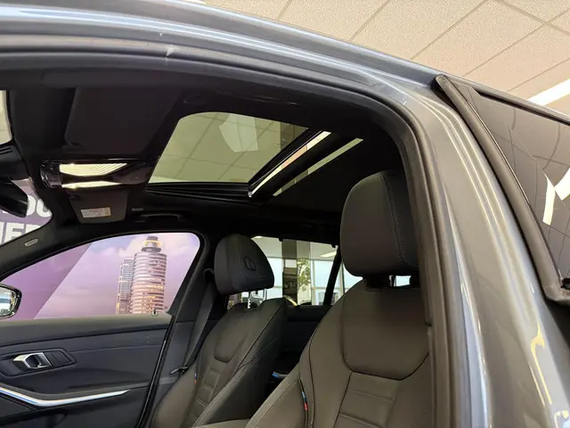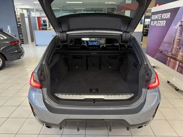 BMW 330e Touring xDrive M Sport – Luxe, prestaties en efficiëntie in perfecte harmonieStap in de toekomst van rijden met deze BMW 330e Touring xDrive, uitgevoerd in de stijlvolle kleur Skyscraper Grey metallic. Dankzij de hybride aandrijving met 292 pk, vierwielaandrijving en 8-traps automaat biedt hij kracht, souplesse en efficiëntie in één. De auto is rijk uitgerust met o.a. een panoramadak, Harman Kardon-audio, 360° camera, lederen Vernasca-bekleding en Head-Up Display.