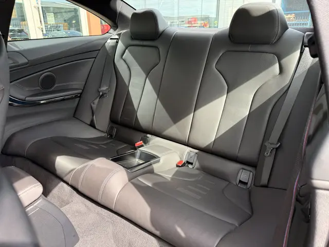 Kippenvel! Deze BMW 4-serie Coupé maakt iedere rit opwindend. Met zijn benzinemotor en automatische transmissie is dit een prima auto voor nog vele kilometers. De hoogwaardige, lederen bekleding benadrukt de kwaliteit van deze auto. U past de stoelen moeiteloos aan, ze zijn elektrisch in te stellen en hebben bovendien een geheugen. Tot de voorzieningen van deze auto behoren 20 inch lichtmetalen velgen, LED koplampen, adaptief dempingsysteem, adaptief M-onderstel, in delen neerklapbare achterbank en elektrisch verstelbare lendensteun.Hoeveel ruimte heeft u nog bij het inparkeren? De achteruitrijcamera brengt helder in beeld wat zich achter de auto bevindt en geeft een geluidssignaal. Smakelijke subs en knisperend hoog: het high performance audiosysteem geeft elke frequentie een kwaliteitsbehandeling voor akoestisch genieten onderweg. Het navigatiesysteem met harde schijf geeft duidelijke instructies. Zo komt u veilig en vlot aan waar u moet zijn. U verwacht natuurlijk automatische airconditioning in deze auto, en die is er dan ook. Audiobediening op het stuur is aanwezig. Gemak en veiligheid voor alles, toch? Ook is de BMW uitgerust met: schakel flippers aan het stuur, regensensor, cruise control, automatisch dimmende binnen- en buitenspiegels, isofix-aansluiting en boordcomputer.