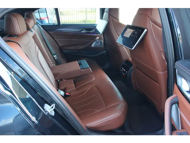 De indrukwekkende vormen en de topprestaties van deze BMW 5-serie staan garant voor ultiem rijplezier. Deze dealeronderhouden auto uit 2020 heeft een tellerstand van 93450 kilometer. De aandrijving wordt verzorgd door een achtcilinder benzinemotor en een automatische transmissie. Kijk, dat noemen we nou stijlvol: een fraai lederen interieur. Gecombineerd met het heerlijke gemak van de elektrisch bedienbare achterklep. Zelfs op de koudste dagen zorgen de stoelverwarming met massagefunctie, stuurverwarming en verwarmbare achterbank voor een comfortabele rijervaring. Zit u goed? De stoelen zijn eenvoudig instelbaar dankzij de elektrische bediening met geheugen. Bij de zeer complete uitrusting van deze auto behoren ook elektrische zonnerollo voor de achterruit, LED-koplampen, adaptief dempingsysteem, adaptief onderstel, zwarte hemelbekleding en elektrisch inklapbare buitenspiegels.Snelheid, brandstofinfo, noem maar op. Het digitale dashboard houdt u permanent op de hoogte. Goed en overzichtelijk. De 360 graden camera biedt een beter zicht bij slechte weersomstandigheden, waardoor u beter kan anticiperen op mogelijke gevaren. Adaptive cruise control houdt de ingestelde snelheid vast en houdt automatisch afstand tot uw voorligger. Veilig en comfortabel rijden wordt nog eens versterkt door Connected Services, zodat u diverse vitale functies van de auto altijd kunt checken in de app. Qua muziekbeleving onderweg gaat deze auto ook een stevige stap verder dankzij het high performance audiosysteem. En deze auto heeft ook navigatiesysteem met harde schijf, achteropkomend verkeer waarschuwing, automatische airconditioning, draadloos opladen, DAB ontvangst en regensensor als standaard uitrusting.