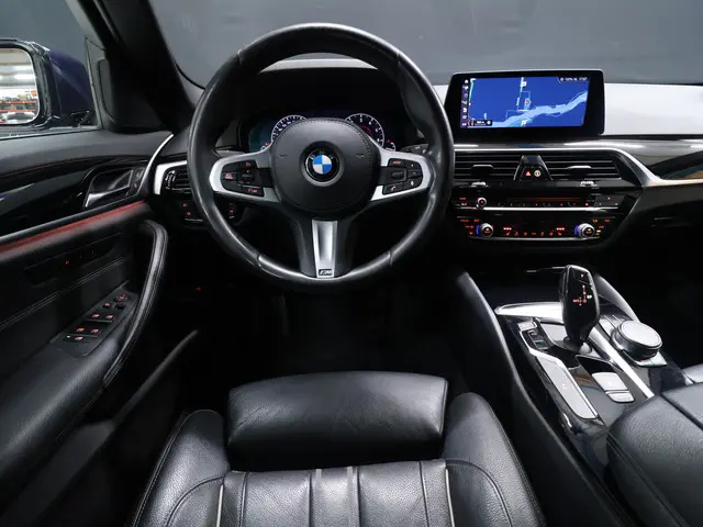 Deze BMW 5-serie Touring maakt een voortreffelijke indruk. Hiermee mag je gezien worden in de stad én op de weg! De krachtige motor geeft deze BMW uitstekende prestaties. Van binnen lijkt het allemaal uitermate ruim dankzij de vrije inval van daglicht via het elektrisch bediende glazen panorama dak. Comfort en luxe? Dat krijgt u door het lederen interieur. En optimaal gemak is er in de vorm van de elektrisch bedienbare achterklep. Zit u goed? De stoelen zijn eenvoudig instelbaar dankzij de elektrische bediening met geheugen. Bij de uitrusting van deze BMW horen onder meer 18 inch lichtmetalen velgen, LED koplampen, sport line onderstel, in delen neerklapbare achterbank, elektrisch verstelbare lendensteun en snelheidsafhankelijke stuurbekrachtiging.U wordt geïntroduceerd tot de digitale wereld van mobiliteit waarop alles wat u wenst wordt geprojecteerd op het digitale dashboard. Ongelukken of parkeerschade? Dat gebeurt u niet meer, met de achteruitrijcamera. Pech oplossen en zelfs voorkomen? Gaat eenvoudig. Via Connected Services heeft u alle data in de hand, gewoon op de smartphone! Het complete geluidsspectrum van de hi-fi krijgt een extra boost door het high performance audiosysteem. Smartphones die zonder snoer kunnen opladen halen simpel een volle accu via de draadloze oplaadmogelijkheid voor telefoons. U bent in deze BMW ook voorzien van dashboard met spraakbediening, navigatiesysteem met harde schijf, WIFI-hotspot, achteropkomend verkeer waarschuwing, automatische airconditioning en DAB ontvangst.