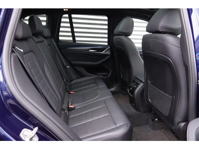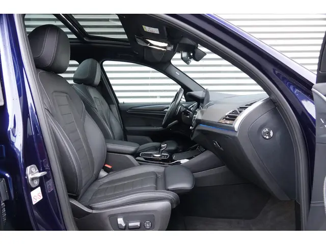 Het is niet alleen de bouwkwaliteit waar Duitse auto's om bekend staan, maar ook de rijkwaliteiten. Dat merkt u achter het stuur van deze BMW X3. Met deze motor haalt u veel kilometers uit een tank brandstof. De luxe van het lederen interieur, gecombineerd met het gemak van het elektrisch bediende glazen panorama dak en de superhandige elektrisch bedienbare achterklep zorgen voor een wel heel complete uitvoering. U past de stoelen moeiteloos aan, ze zijn elektrisch in te stellen en hebben bovendien een geheugen. Deze BMW X3 is niet zuinig met comfort. Wat dacht u van een verwarmde achterbank? Ook LED-koplampen, sportonderstel, halflederen bekleding, warmtewerend glas, in delen neerklapbare achterbank en LED-achterlichten horen tot de voorzieningen op deze auto.Uw rit wordt comfortabel en veilig gemaakt door het digitale dashboard dat alles projecteert wat u wenst in de digitale wereld van mobiliteit. Het inventieve 360 graden camerasysteem op deze auto heeft de functie om u assistentie te bieden in nauwe ruimtes en straten, waar het achteruit rijden vaak een uitdaging is. Dankzij de spraaksturing bedient u verschillende functies zonder uw handen van het stuur te halen. In het zeldzame geval van een storing weet u nog eerder dan de monteur wat er mankeert. Uw smartphone met remote services geeft direct inzicht. Wegwijs in elke wijk, stad of reisbestemming? Daarvoor zorgt het navigatiesysteem met harde schijf! U bent in deze BMW ook voorzien van achteropkomend verkeer waarschuwing, kruisend verkeer detectie, automatische airconditioning, schakelpaddles aan het stuur, draadloos opladen en DAB ontvangst.