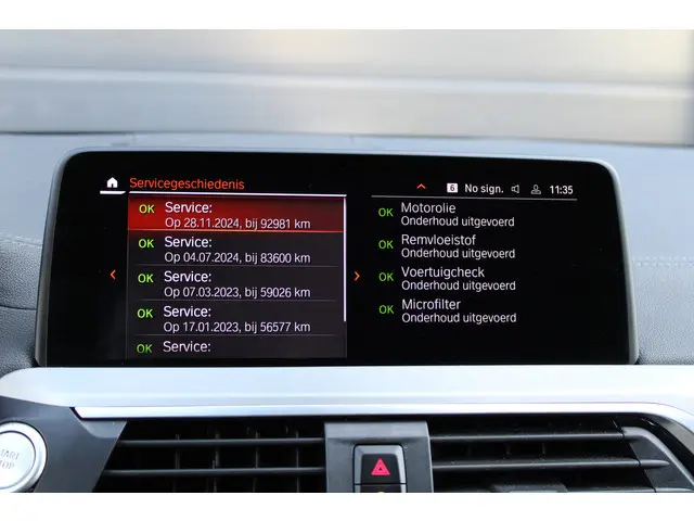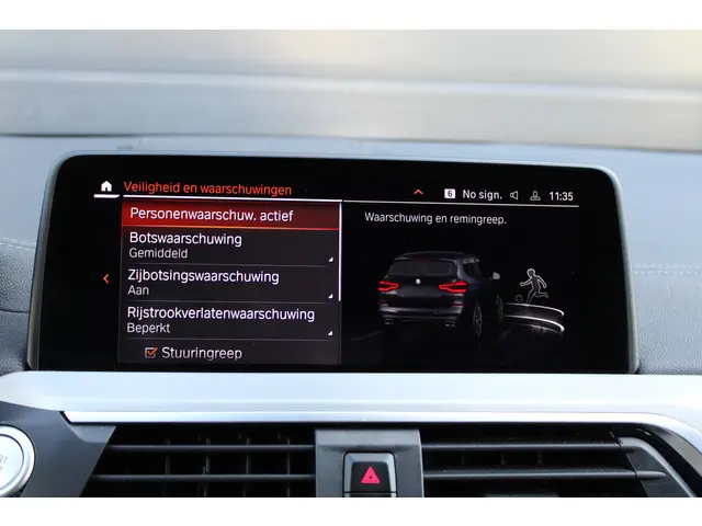 Zoals u mag verwachten van deze BMW X3 is hij uitgerust met een reeks aan actieve veiligheidssystemen. Het Lane-keeping systeem zorgt voor een automatisch constante positie binnen de rijstrook. Afdwalen is uitgesloten. Veilig inhalen en invoegen wordt bevorderd door de actieve dodehoekdetectie. Het forward collision warning-systeem is constant alert en detecteert via sensor de afstand tot voorliggers. Wordt die te klein, dan volgt een automatische waarschuwing. De veiligheid van deze auto wordt verder verhoogd door head-up display, hill hold functie, brake assist, vermoeidheidsherkenning en bandenspanningcontrolesysteem.