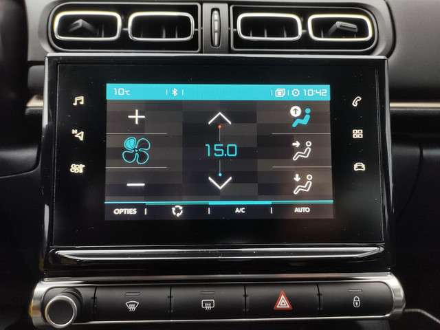 Ook compacte auto's kunnen volop ruimte en comfort bieden, dat bewijst deze Citroen C3. Met zijn pittige motor stuurt u deze auto vlot door het verkeer heen. Bij de zeer complete uitrusting van deze auto behoren ook 16 inch lichtmetalen velgen, LED-dagrijverlichting, extra getint glas, in delen neerklapbare achterbank en snelheidsafhankelijke stuurbekrachtiging.Alles vrij achter? De achteruitrijcamera laat het meteen zien. Deze auto gaat met u in gesprek. Hij vertelt u dankzij remote services alles over de status van diverse onderdelen en laat zich desgevraagd ook activeren. Gewoon via uw smartphone. Het is veiliger om altijd uw ogen op de weg te houden en uw handen aan het stuur; daarom is dit voertuig uitgerust met een audiosysteem met DAB-ontvangst en een full map navigatiesysteem dat kan worden bediend via het stuurwiel of spraakbediening. Ook over uw schouder ziet u onderweg niet alles wat er aan de achterzijde gebeurt. Daarom heeft deze Citroen C3 een achteropkomend verkeer waarschuwing. Met de automatische airconditioning selecteert u de gewenste temperatuur. Het systeem doet de rest. Ook regensensor, cruise control, automatisch dimmende binnenspiegel, lederen stuur, centrale deurvergrendeling met afstandsbediening en boordcomputer horen tot de voorzieningen op deze auto.