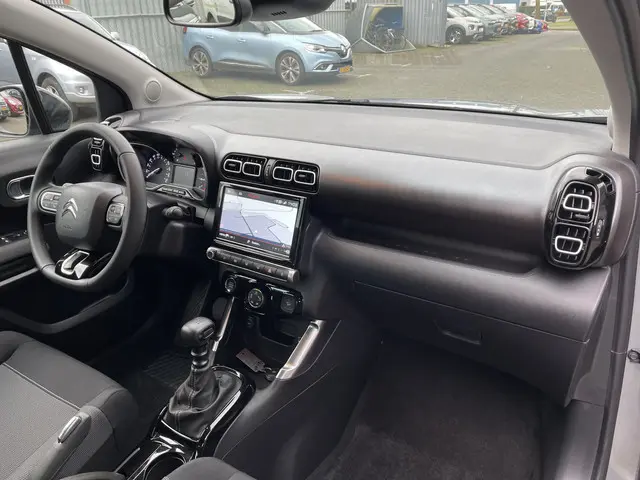 U gelooft het misschien moeilijk, maar deze Citroën C3 Aircross is niet nieuw. Nèt niet. De eerste eigenaar heeft 'm eventjes voor u ingereden en de nieuwprijs voor zijn rekening genomen. Nu is-ie voor u. Een krachtige driecilinder benzinemotor en een prettige handgeschakelde zesversnellingsbak zorgen voor de aandrijving van deze stoere Citroën. Ook 17 inch lichtmetalen velgen, LED koplampen, donker getint glas achter en in delen neerklapbare achterbank horen tot de voorzieningen op deze auto.Zelfs een kleine aanrijding kan flinke kosten veroorzaken. Gelukkig laat de achteruitrijcamera precies zien wat er zich achter de auto bevindt en geeft een waarschuwingssignaal. Net als een smartphone of een slimme speaker kunt u deze auto bedienen met stemcommando's. De jeugd is niet los te maken van hun smartphone, en dat zie je ook aan deze jonge auto. Via een speciale app staat u overal en altijd in contact met uw vierwieler. Superhandig! De snelste of zuinigste weg? Het navigatiesysteem aan boord wijst de juiste weg! Aan boord van deze Citroën C3 Aircross is een achteropkomend verkeer waarschuwing voor extra veiligheid. Ook automatische airconditioning, DAB ontvangst, regensensor, cruise control, keyless entry en buitentemperatuurmeter zijn aan boord.