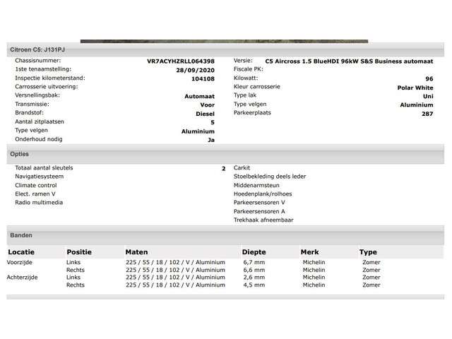 Voertuiggegevens van deze Citroën C5 Aircross