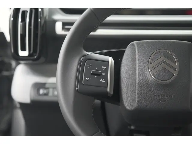 Zoals u mag verwachten van deze Citroen Ë-C3 is hij uitgerust met een reeks aan actieve veiligheidssystemen. Het Top Gun-gevoel komt van de head-up display, die alle dashboardinfo in het rijzicht projecteert. Dat de auto steeds meer taken van de bestuurder overneemt, merkt u bijvoorbeeld aan het systeem voor verkeersbord-detectie in deze Citroen. Indien u onbedoeld de rijstrook lijkt te verlaten, reageert het Lane-keeping systeem meteen en corrigeert. In deze Citroen vinden we verder een hill hold functie, vermoeidheidsherkenning, autonoom remsysteem en bandenspanningcontrolesysteem.
