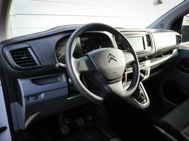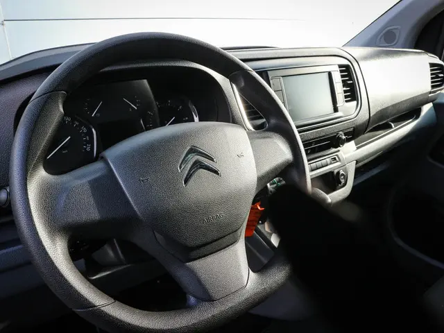 Bij het ontwerpen van de Citroën Jumpy stonden uw comfort en uw veiligheid centraal. In deze auto vindt u een dieselmotor en een handgeschakelde zesversnellingsbak. De schuifdeur bij het passagiersdeel is ook een voordeel: geen uitzwaaiende portieren en een royale instap.Navigatie, onderhoudsstatus, vergrendeling, audio... de mogelijkheden van remote services zijn haast oneindig. Ook deze auto laat zich bedienen en analyseren via uw smartphone! Audio-aanpassingen doen zonder de weg uit het oog te verliezen? Daar zorgt de audiobediening op het stuur voor! Parkeersensoren helpen u tijdens het in- en uitparkeren. Het luxeniveau in deze Citroën is niet alleen gericht op comfort, maar ook op uw veiligheid. Tal van sensoren helpen u om de omgeving in de gaten te houden. De automatisch inschakelbare verlichting zorgt dat automatisch de verlichting wordt ingeschakeld als het donker wordt, wat bijvoorbeeld in tunnels erg handig is. En de regensensor zet de ruitenwissers aan zonder dat u eraan hoeft te denken. Niet te snel, niet langzaam maar precies goed: laat dat maar over aan de cruise control. De Citroën is standaard voorzien van: airconditioning, centrale deurvergrendeling met afstandsbediening, boordcomputer en verstelbaar stuur.
