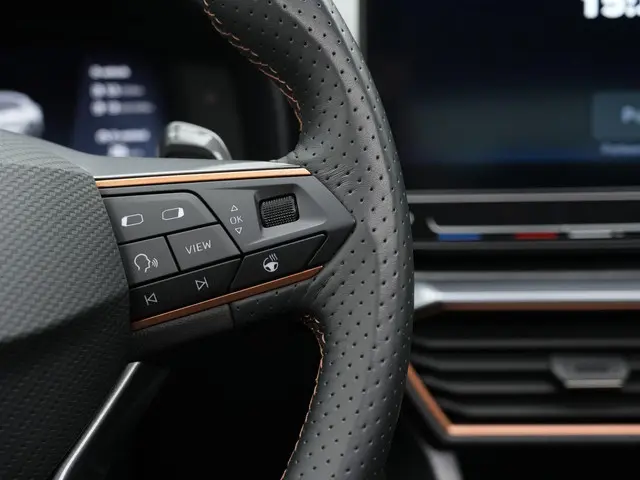 Achter het stuur ervaar je direct het comfortabele en solide karakter van de Formentor. De sportstoelen bieden goede ondersteuning, terwijl het verwarmbare stuurwiel en de verwarmbare voorruit zorgen voor extra comfort tijdens koude dagen. Dankzij adaptive cruise control met Stop & Go en de uitgebreide assistentiesystemen zoals Lane Assist Plus en Travel Assist rijd je ontspannen, ook in druk verkeer of op lange afstanden. De achteruitrijcamera en dodehoekassistent maken manoeuvreren eenvoudig en veilig, terwijl de elektrische achterklep met voetbediening het dagelijks gebruik net dat stukje praktischer maakt.