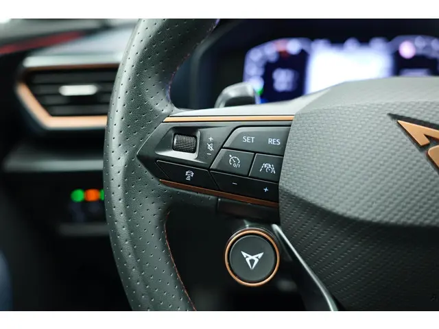 De CUPRA Formentor is ook voorzien van ADAS. Deze Advanced Driver Assistence Systems fungeren als extra ogen en oren: ze houden voor u de weg in de gaten en grijpen in wanneer dat nodig is. In het instrumentarium kunt u bovendien de verkeersborden zien die u onderweg tegenkomt. Zo helpt deze CUPRA u om veiliger te rijden. Met het Lane-keeping systeem gaat u nooit onbedoeld over de streep. Het forward collision warning-systeem waarschuwt indien een botsing dreigt met een voorliggend of tegemoetkomend voertuig. Dankzij veiligheidsvoorzieningen als dodehoekdetectie, hill hold functie, vermoeidheidsherkenning, autonoom remsysteem en bandenspanningcontrolesysteem, bent u steeds veilig onderweg.