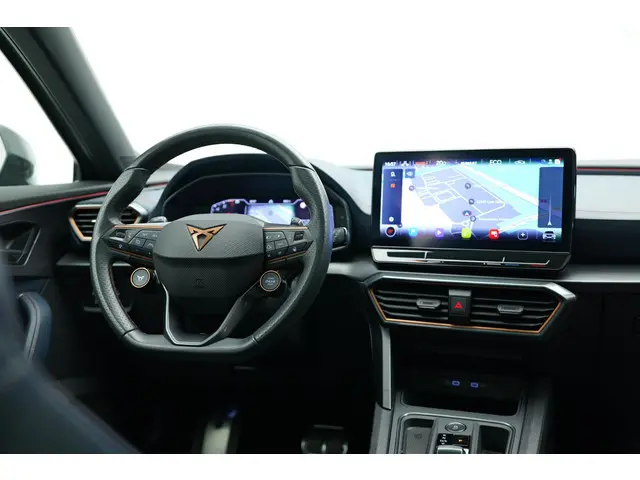 Een echt goede auto biedt meer dan alleen maar hoge prestaties en een comfortabele rit. Zo'n auto verrijkt uw leven door een optimale combinatie van doordachte vormgeving en hoogstaande techniek. Deze CUPRA Formentor is daar een goed voorbeeld van. De combinatie van een verbrandingsmotor en een elektromotor zorgt voor prima rij-eigenschappen en een laag brandstofverbruik. Behaaglijk onderweg zijn? Als bestuurder geniet u van de verwarmbare voorstoelen. Net als uw bijrijder! Voor het pittige uiterlijk én goed gesteund zitten zorgen de sportstoelen. Houdt u van frisse lucht en van licht dan zit u helemaal goed met het elektrisch bediende panoramadak. De achterklep opent automatisch met een druk op de knop. Handig als u met volle handen staat. Deze CUPRA Formentor heeft een verwarmd stuurwiel. Nooit meer koude handen onderweg. De uitmonstering van deze auto wordt gecompleteerd door onder meer 18 inch lichtmetalen velgen, Full LED koplampen, adaptief dempingsysteem, extra getint glas, in delen neerklapbare achterbank en LED-achterlichten.