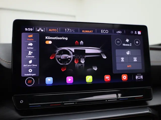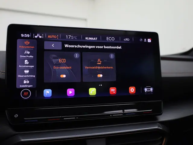 U geniet nog meer van het rijden met uw CUPRA omdat u wordt beschermd door intelligente veiligheidssystemen. In het instrumentarium ziet u tijdens de rit ook de belangrijkste verkeersborden aangegeven, die de auto automatisch voor u leest. Deze CUPRA Formentor is ook behulpzaam als het gaat om een rechte koers. Het Lane-keeping systeem signaleert en corrigeert als u onbedoeld de rijstrooklijnen dreigt te overschrijden. Voor meer veiligheid detecteert deze auto het risico van een aanrijding tijdig via de forward collision warning. Ook helpen het dodehoekdetectie, front assist, hill hold functie, vermoeidheidsherkenning, autonoom remsysteem en bandenspanningcontrolesysteem, uw rit tot een veilige rit te maken.