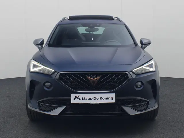 Bij Maas-De Koning doen we er alles aan om uw rijervaring zo aangenaam en zorgeloos mogelijk te maken. Bij de aanschaf van een dealeroccasion heeft u de vrijheid om te kiezen welk afleverpakket het beste aansluit bij uw wensen. Wij bieden twee pakketten: het Standaard pakket (inbegrepen) en het Approved pakket (tegen een meerprijs). Met het Approved pakket kiest u voor extra zekerheid, zoals minimaal 12 maanden garantie en een onderhoudsvrije periode van 6 maanden of 7.500 km na aflevering. Zo geniet u van maximale gemoedsrust. U bepaalt zelf welke zekerheid en service u nodig heeft, terwijl wij ervoor zorgen dat uw voertuig technisch volledig wordt klaargemaakt volgens uw voorkeuren.Geen andere techniek heeft in deze eeuw de automobiel zo veranderd als de hybridetechniek. Deze hybride auto heeft een sterke, zuinige elektromotor én een verbrandingsmotor. Kortom: uitstekende rijprestaties en een veel lager brandstofgebruik. Bestuurder en bijrijder krijgen een warm welkom: deze CUPRA Formentor is voorzien van verwarmbare voorstoelen. Het daglicht valt in overvloed via het elektrisch bediende panoramadak op het fraaie interieur. De bagageruimte is toegankelijk via een comfortverhogende elektrische achterklep. Koude handen? Da's voorbij met het verwarmd stuurwiel. Pak aan! Tot de voorzieningen van deze auto behoren 19 inch lichtmetalen velgen, Full LED koplampen, adaptief dempingsysteem, donker getint glas achter, in delen neerklapbare achterbank en LED-achterlichten.