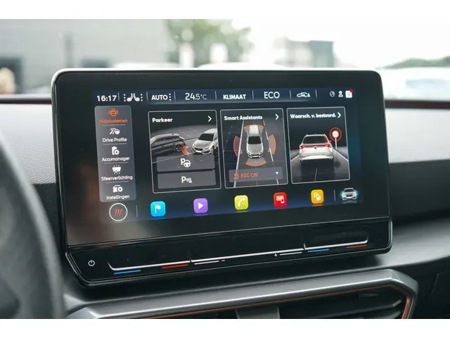 Bent u op zoek naar een sportieve en luxe hybride auto die zowel krachtig als zuinig is? Dan is deze Cupra Leon Sportstourer 1.4 e-Hybrid Perf. zeker het overwegen waard. Met een vermogen van maar liefst 204 PK en een hybride benzine brandstofsysteem, combineert deze auto moeiteloos prestaties met efficiency.Deze zwarte Sportstourer uit 2021 straalt niet alleen elegantie uit, maar biedt ook een overvloed aan handige en veiligheid verhogende opties. Zo beschikt deze auto over een handige achteruitrijcamera, waardoor inparkeren en achteruitrijden een fluitje van een cent worden. Daarnaast zorgt de Autonomous Emergency Braking ervoor dat u altijd veilig op weg bent, doordat het systeem automatisch ingrijpt in noodsituaties.