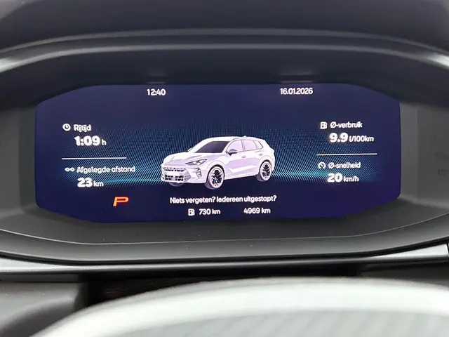 Met zijn ruimte en zijn prestaties is dit de auto die bij u past. Het is vermeldenswaard dat deze auto maar 4775 kilometer heeft gereden sinds 2025. In deze auto vindt u een benzinemotor en een automatische transmissie. Voorin is het 's winters genieten met de verwarmbare voorstoelen voor zowel bestuurder als bijrijder. Een praktische extra is de elektrisch bedienbare achterklep die opent en sluit met een druk op de knop. Wind, sneeuw, hagel, regen... allemaal vergeten als u het verwarmd stuurwiel in handen heeft. Daglicht bij nacht? De koplampen met matrix LED-verlichting zorgen ervoor. In deze CUPRA profiteert u onder andere ook van: 19 inch lichtmetalen velgen, adaptief dempingsysteem, zwarte hemelbekleding, extra getint glas, in delen neerklapbare achterbank en LED-achterlichten.Via het digitale dashboard bent u permanent op de hoogte van alle informatie die u nodig heeft voor een veilige rit. De vier camera's genereren samen een 360 graden beeld rond de auto, zodat u een volledig overzicht hebt van wat er rondom uw auto gebeurt. Adaptive cruise control houdt de ingestelde snelheid vast en houdt afstand tot het voertuig voor u. Handig en veilig: Connected Services. Alle vitale functies en data van de auto checkt u via de app op uw smartphone. In deze Terramar vindt u niet alleen schakelaars op het stuur om het navigatiesysteem te bedienen en het audio-installatiesysteem met DAB-ontvangst, maar er is ook spraakbediening. De CUPRA is standaard voorzien van: automatische airconditioning, draadloos opladen, regensensor, keyless entry, automatisch dimmende binnenspiegel en isofix-aansluiting.