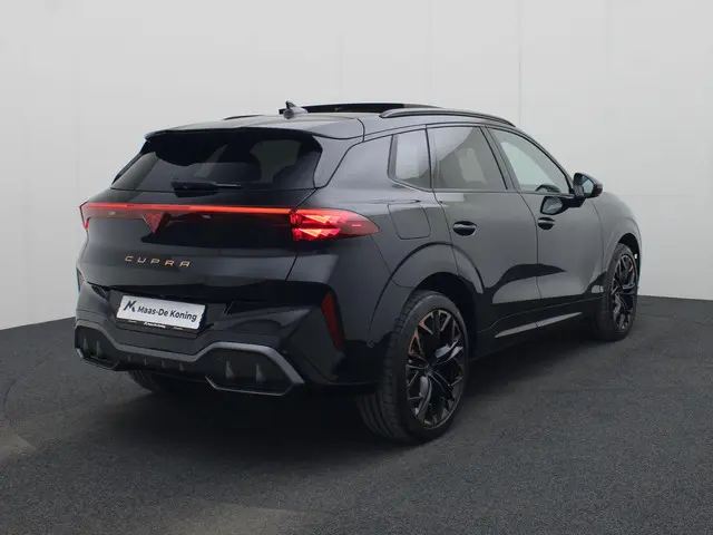 Bij Maas-De Koning doen we er alles aan om uw rijervaring zo aangenaam en zorgeloos mogelijk te maken. Bij de aanschaf van een dealeroccasion heeft u de vrijheid om te kiezen welk afleverpakket het beste aansluit bij uw wensen. Wij bieden twee pakketten: het Standaard pakket (inbegrepen) en het Approved pakket (tegen een meerprijs). Met het Approved pakket kiest u voor extra zekerheid, zoals minimaal 12 maanden garantie en een onderhoudsvrije periode van 6 maanden of 7.500 km na aflevering. Zo geniet u van maximale gemoedsrust. U bepaalt zelf welke zekerheid en service u nodig heeft, terwijl wij ervoor zorgen dat uw voertuig technisch volledig wordt klaargemaakt volgens uw voorkeuren.De vooruitstrevende hybride aandrijflijn van deze auto geeft vandaag al antwoord op de belangrijke vragen van morgen. Deze CUPRA Terramar is van het bouwjaar 2024, hij heeft 10467 kilometer gelopen. Naast de verbrandingsmotor beschikt de auto ook over een elektromotor, die zorgt voor een extra laag brandstofverbruik. Met zijn lederen bekleding is deze CUPRA comfortabel en stijlvol. Lekker hoor, die verwarmbare voorstoelen. Helemaal op koude dagen. Dankzij het elektrisch bediende glazen panoramadak lijkt het of u altijd met open dak rijdt. De achterklep opent automatisch met een druk op de knop. Handig als u met volle handen staat. Hoe koud het buiten ook is, het verwarmbare stuurwiel brengt uw handen en vingers snel weer op temperatuur. Vergeet halogeen; deze koplampen gebruiken de allernieuwste matrix LED-technologie met maximale lichtopbrengst zonder de tegenligger te hinderen. In deze CUPRA profiteert u onder andere ook van: 20 inch lichtmetalen velgen, adaptief dempingsysteem, donker getint glas achter, in delen neerklapbare achterbank, LED-achterlichten en verstelbare lendensteunen.