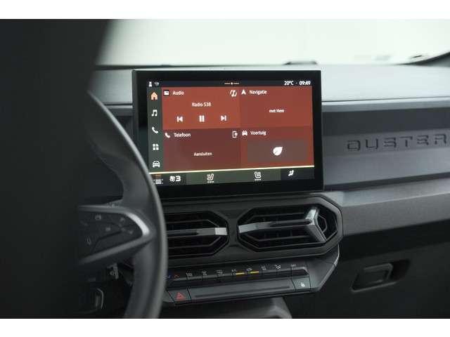 Natuurlijk brengt het digitale dashboard alle ritinformatie perfect in beeld. Maar ook communicatie, navigatie en tal van andere functies zijn permanent te volgen. Altijd achter zicht, nooit meer nekkramp! De achteruitrijcamera maakt het supermakkelijk. In deze Duster vindt u schakelaars op het stuur om het navigatiesysteem te bedienen en het audio-installatiesysteem met DAB-ontvangst. Het drukke verkeer eist onderweg al uw aandacht op. Daarom is het goed dat deze Dacia is voorzien van diverse systemen die u assisteren tijdens de rit. Een automatisch inschakelbare verlichting neemt het waar als het donker wordt of gaat schemeren, en schakelt dan automatisch de verlichting in. Op dezelfde manier "ziet" de regensensor de eerste spatjes regen en schakelt dan de ruitenwissers in, en als het harder gaat regenen zet hij de ruitenwissers ook in een snellere stand. De cruise control betekent gemak, comfort en zuinig rijden. Ook is de Dacia uitgerust met: airconditioning, centrale deurvergrendeling met afstandsbediening, boordcomputer en verstelbaar stuur.